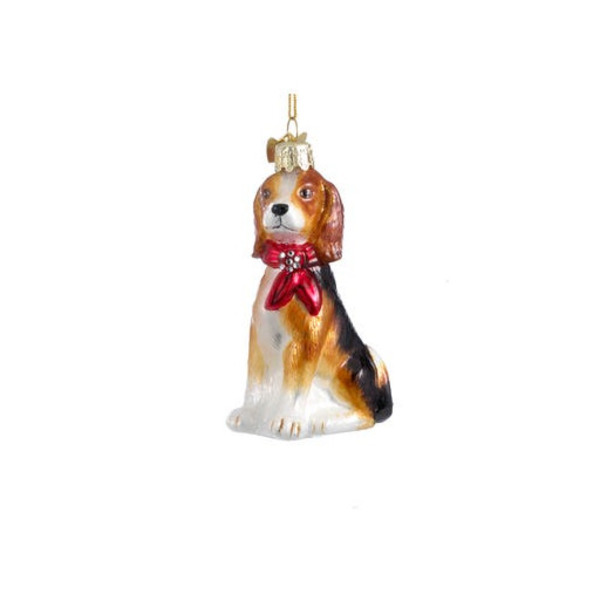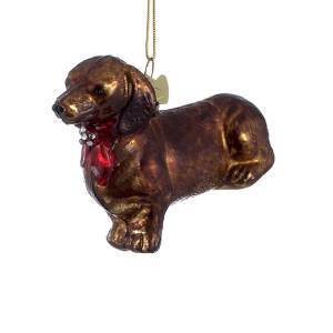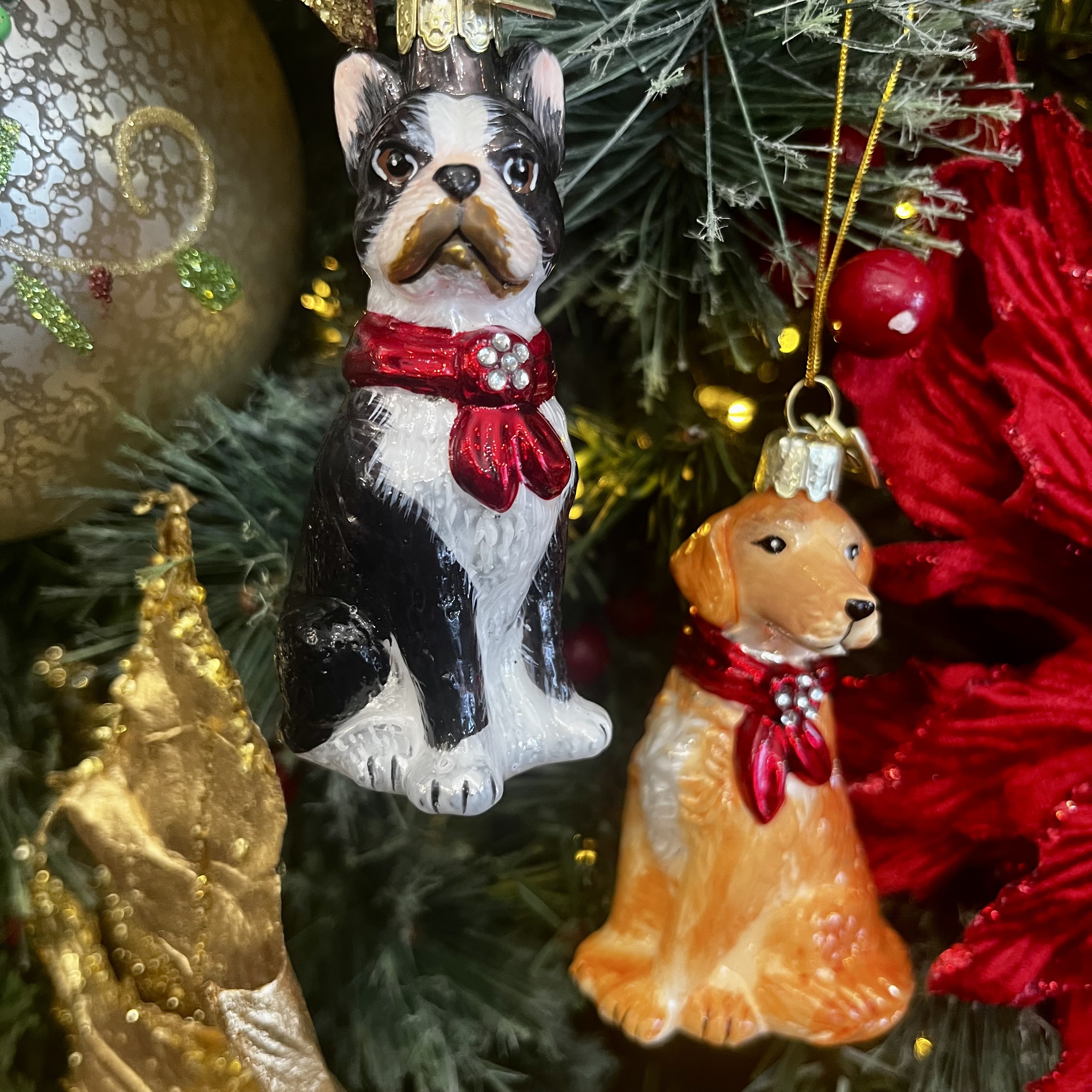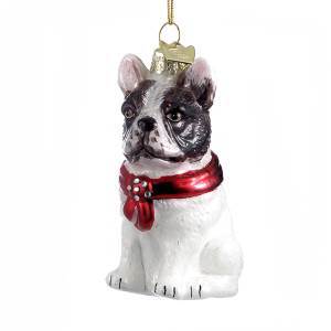 Эта игрушка - прекрасное дополнение к любому праздничному декору или новогодней ёлке. На этом украшении изображены собаки в праздничном красном шарфе со стразами. Идеальный подарок для любителей собак.