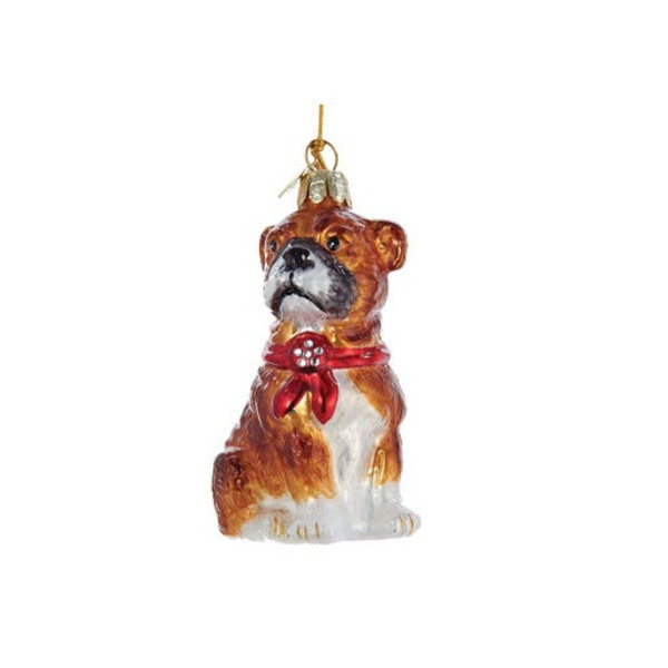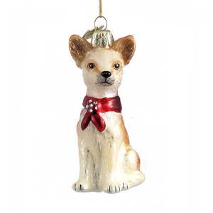 Эта игрушка - прекрасное дополнение к любому праздничному декору или новогодней ёлке. На этом украшении изображены собаки в праздничном красном шарфе со стразами. Идеальный подарок для любителей собак.