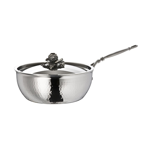 Стальной конический сотейник идеален для приготовления лёгких кремов и десертов. Закругленное дно специально создано для удобства взбивания яичного желтка, сахара, масла. Любые продукты, будь то тушеное мясо, овощи или соусы, благодаря стальному внутреннему покрытию, не изменят свои вкусовые и питательные свойства. Сотейник с толстым дном.
