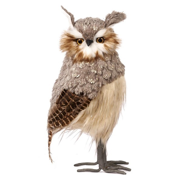 Добавьте нотку природы в свой праздничный декор с помощью этих украшений в виде сов. Сова выполнена из перьев и шерсти и выглядит, как настоящая.