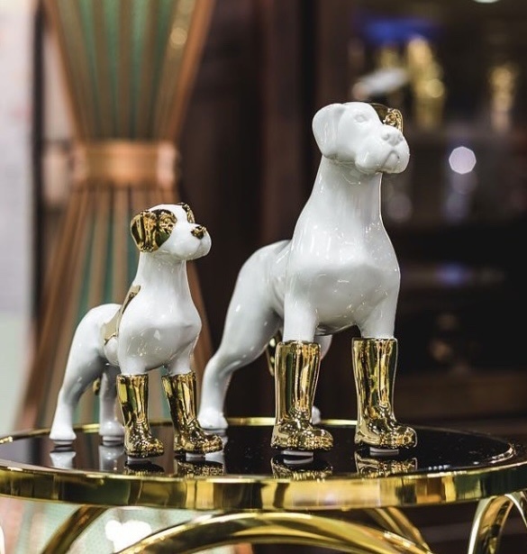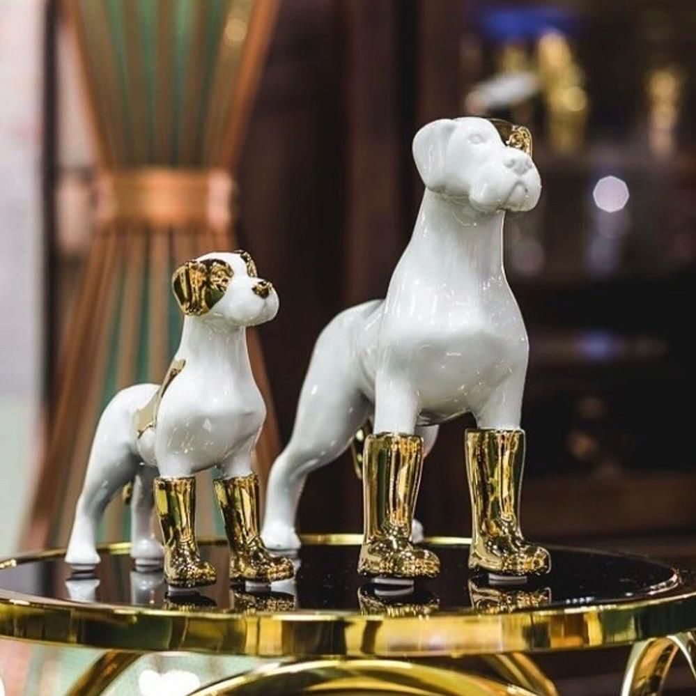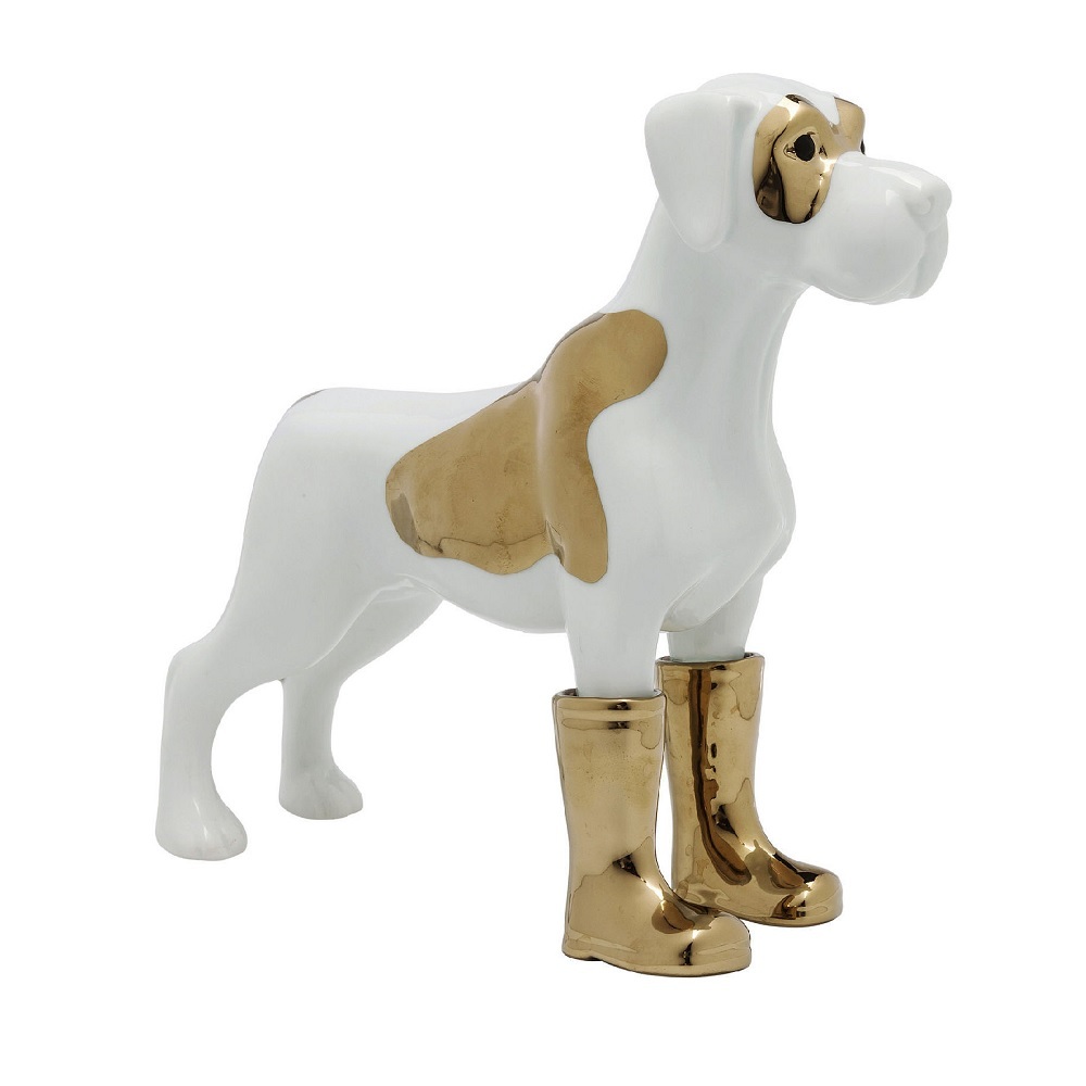 Оригинальная скульптура собаки в сапогах. Ручная работа из фарфора.