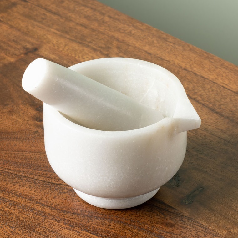 Мраморная ступка — это изысканный и практичный кухонный предмет, предназначенный для измельчения и смешивания различных ингредиентов и специй. Выполненная из натурального мрамора, она отличается высокой прочностью, холодостойкостью и привлекательным внешним видом. Удобная форма и прочный толкач обеспечивают эффективное и легкое измельчение продуктов, сохраняя их аромат и вкус. Такой инструмент станет стильным дополнением любой кухни и одновременно послужит долговечным помощником для приготовления разнообразных блюд и приправ.