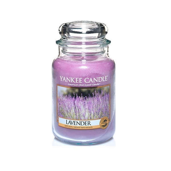 Большая свеча в стеклянной банке с прекрасным ароматом лаванды. Роскошный и одновременно успокаивающий букет лаванды.