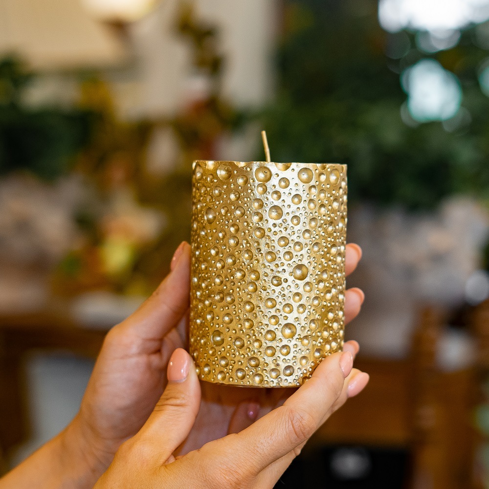 Свеча – это универсальный декоративный элемент, который можно использовать всегда и везде. Её мерцающее пламя неизменно привлекает к себе внимание и просто завораживает. Имеет яркий золотистый цвет и эффект пузырьков.