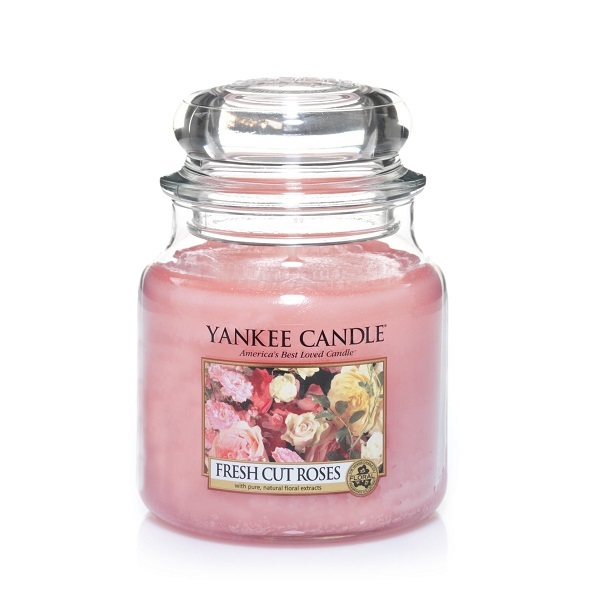 Свеча среднего размера в стеклянной банке c ароматом настоящих свежих роз.