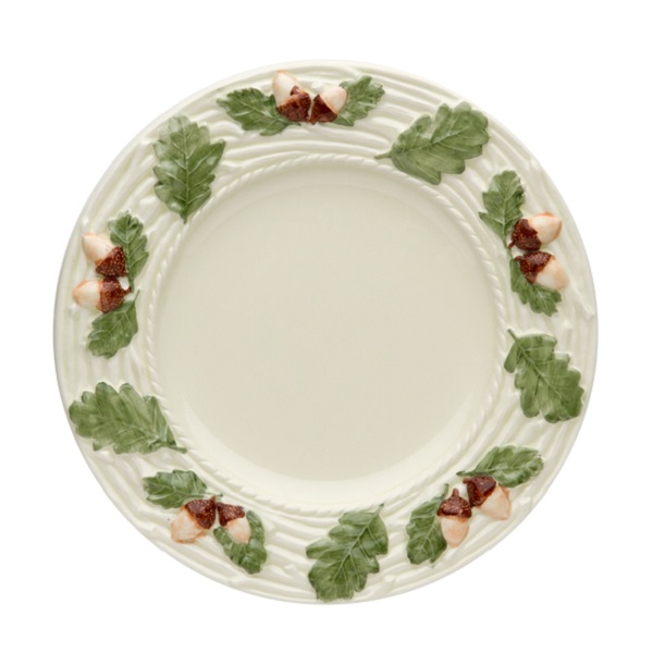 Коллекция Жёлуди увековечивает натуралистическое наследие бренда, представляя собой неожиданную и забавную коллекцию различных ёмкостей, которые могут служить не просто декоративными элементами, но и выполнять вполне утилитарные функции. Тарелка с декором в виде желудей универсальна. Жёлуди не просто нарисованы, они выпирают на фоне зелени, создавая эффект натуральности. Выполнена в стиле майолика – очень старинной технике производства керамики. Она представляет собой процесс, при котором глиняная основа, созданная мастером, покрывается глазурью с высоким содержанием свинца, а после подвергается обжигу. Такая посуда ценится своей стойкостью к температурам и ее можно мыть в посудомоечной машине, с годами её блеск и яркость не утрачивают актуальность.