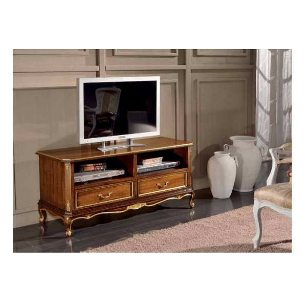 Стойка для TV - настоящая находка для тех, кто любит домашние киносеансы и ценит комфорт. На её столешнице поместится любой экран, вместительные секции скроют всё лишнее, а фасады, декорированные золотым орнаментом, станут украшением комнаты.