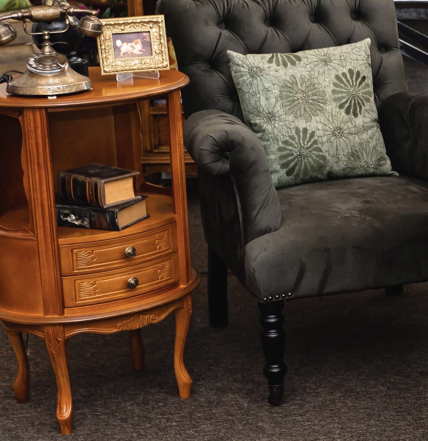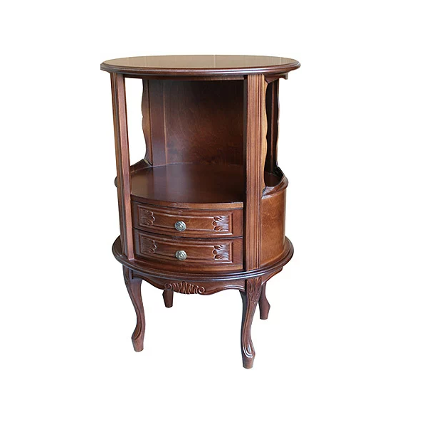 Эта тумбочка, как и другие модели, изготовлена из массива дерева, её поверхности отделаны ореховым шпоном и покрыты несколькими слоями лака.