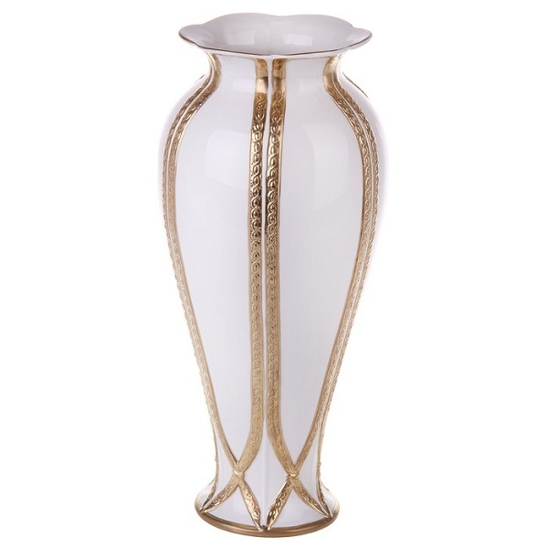 Изящная фарфоровая ваза, декорированная позолотой, отличается классически простым и элегантным внешним видом. Идеальное сочетание матового фарфора и глянцевой позолоты. Нужный аксессуар для дома и прекрасный подарок.