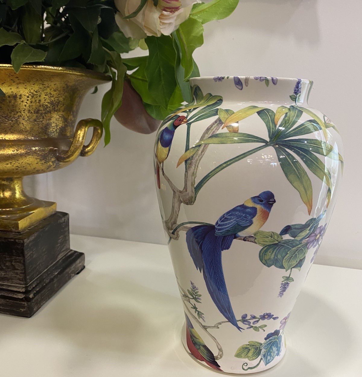 Красивая ваза завораживает своей красотой и необычным оформлением. Яркий рисунок птички, сидящей на ветке дерева, выполнен вручную. Оригинальная ваза будет необычным, элегантным подарком представительницам женского пола на любой праздник.