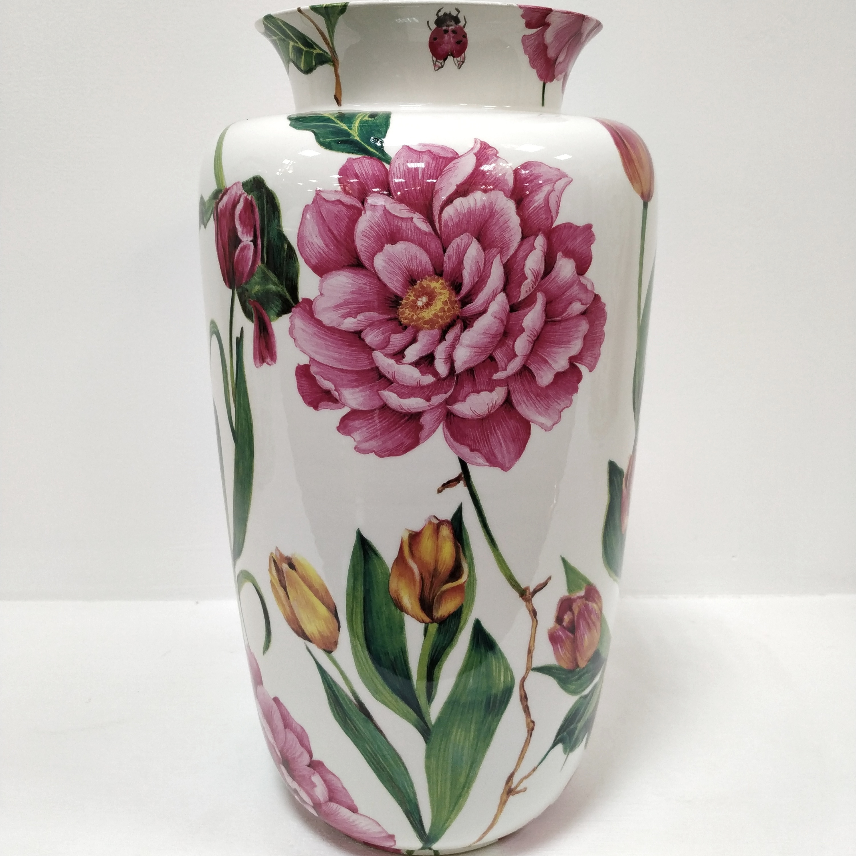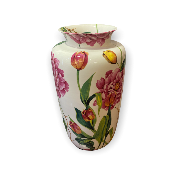 Дизайнерская ваза Пионы станет гармоничным дополнением самых красивых цветочных композиций. Удачное сочетание цветовых оттенков, а также искусное исполнение вазы делают это изделие отличным подарком и идеальным интерьерным украшением.