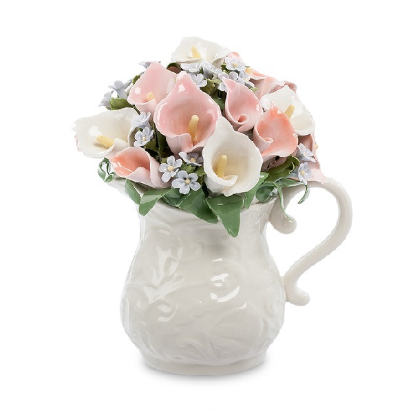 Музыкальная композиция Кувшин с цветами гармонично подойдёт к любому стилю - будь то барокко, классический интерьер, или изысканный прованс. Преобладающие нежно-розовые и белые цвета мало кого смогут оставить равнодушным и привнесут в дом очарование и чувство душевного спокойствия. Кувшин с цветами даже в самую ненастную погоду напомнит о весне, о благоухании лета, и на душе станет теплей и романтичней. Идеальный подарок для любого случая.