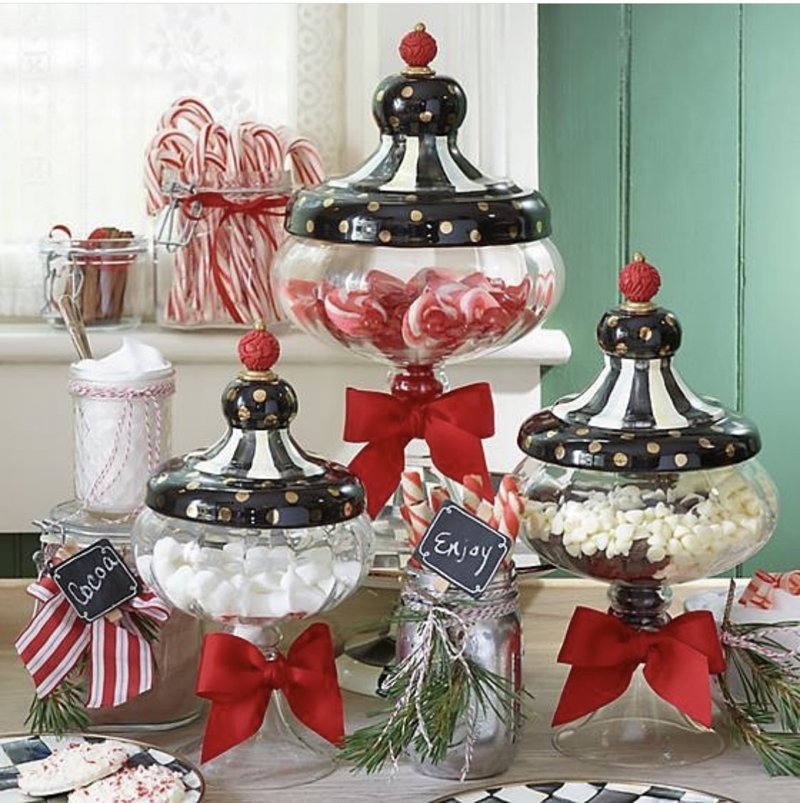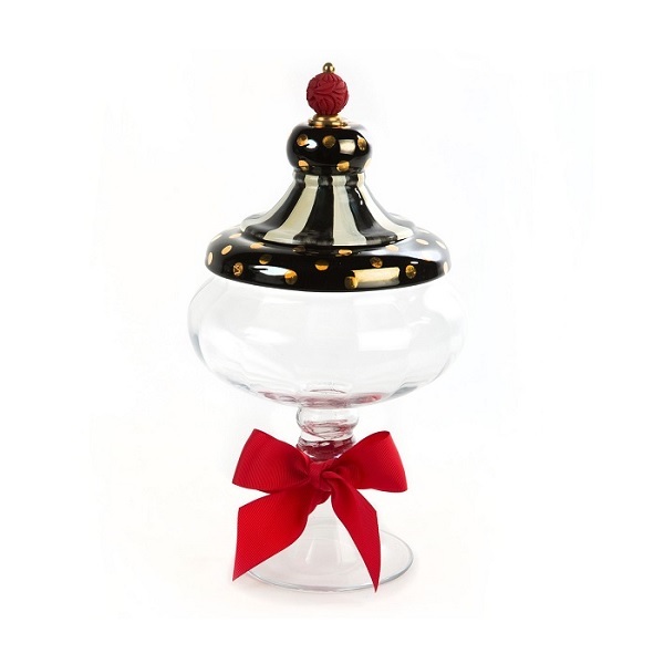 Ваза с крышкой средняя, расписанная вручную, с позолотой и блеском, коронованная резной ручкой из искусственной киновари, представляет собой шоу-стоппер - заполненная или пустая, благодаря щедрым пропорциям, замысловатым деталям и красивому красному банту.
