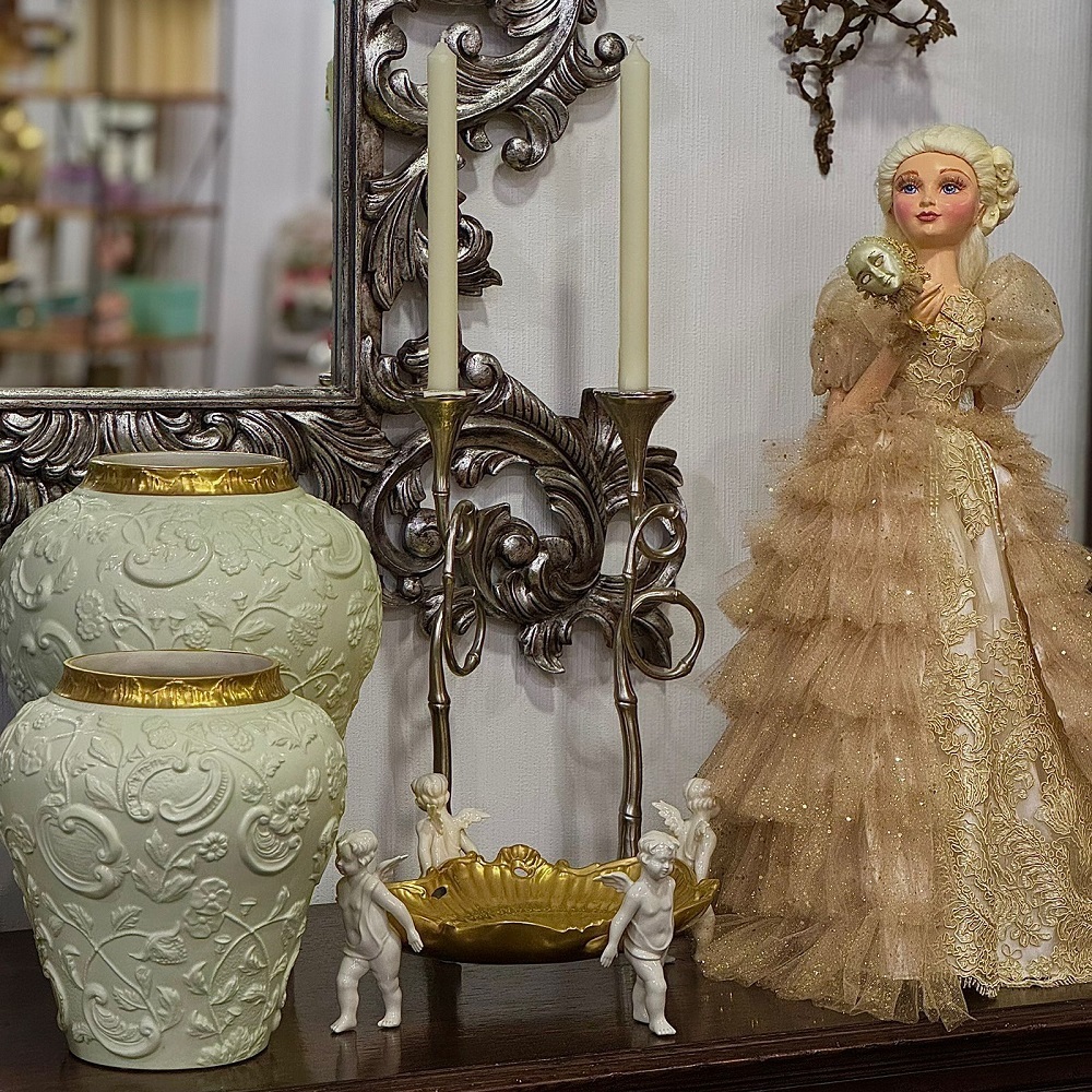 Таормина - жемчужина острова Сицилия! Итальянская фарфоровая ваза с позотой от мирово бренда Villari станет центральной нотой вашего интерьера. Сделана полностью из фарфора и горлышко покрыто 24-каратным золотом. Имеет печать фирмы на дне и подпись автора. Полностью ручная работа.