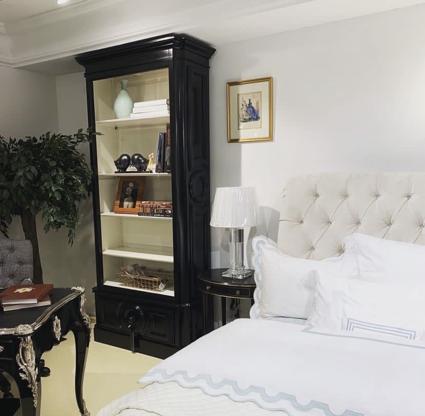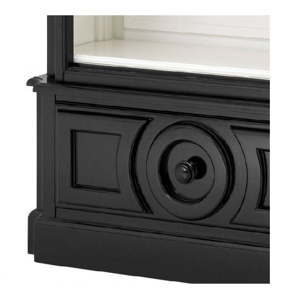 Открытая витрина с тремя внутренними полками и выдвижным ящиком в основании. Классический дизайн подчёркивают элементы резного декора и контрастные цвета отделки. Привлекательная витрина для книг, посуды и других предметов коллекционирования.