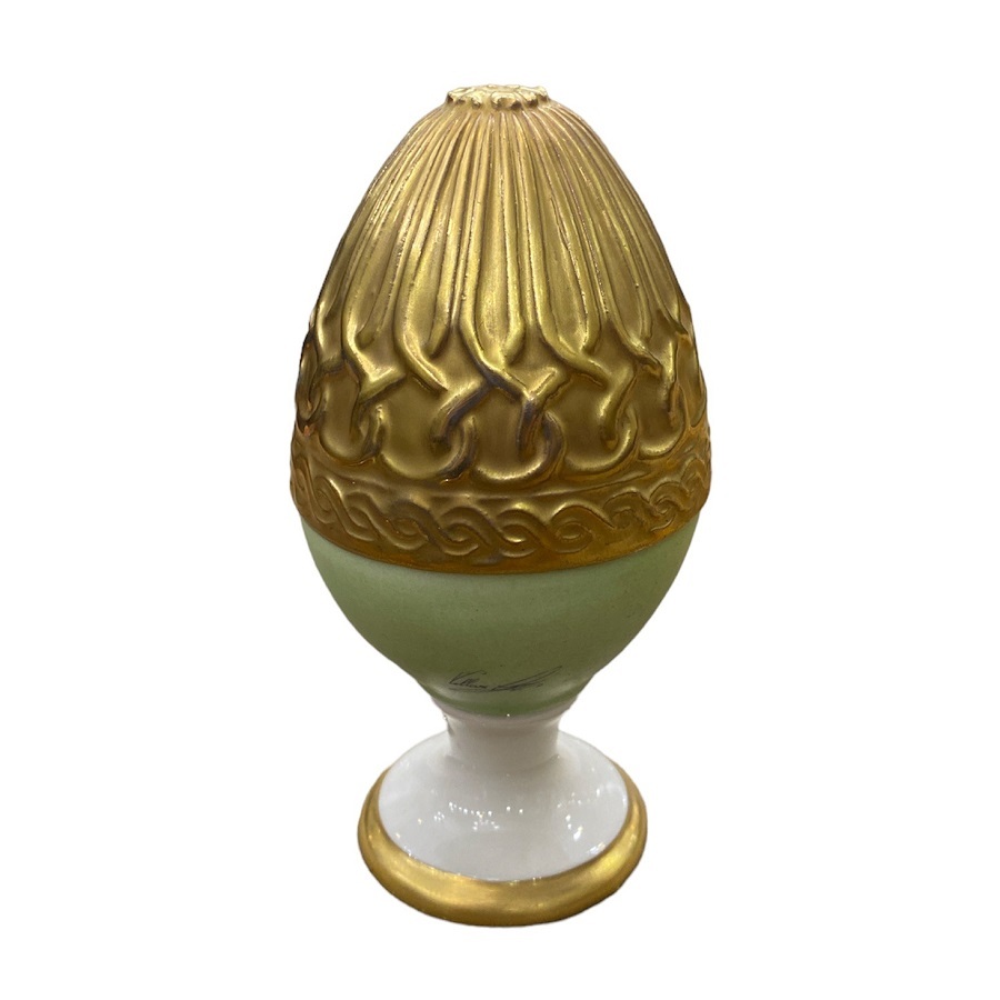Статуэтка в виде яйца выполнена искусными итальянскими мастерами. Декорирована 24-каратным золотом, что придает ей еще большую ценность. На каждом изделии стоит подпись автора Чезаре Виллари, что служит гарантией подлинности предмета. Статуэтка в виде яйца сочетает в себе не только престиж и роскошь, её красота связана с итальянской историей и традициями.