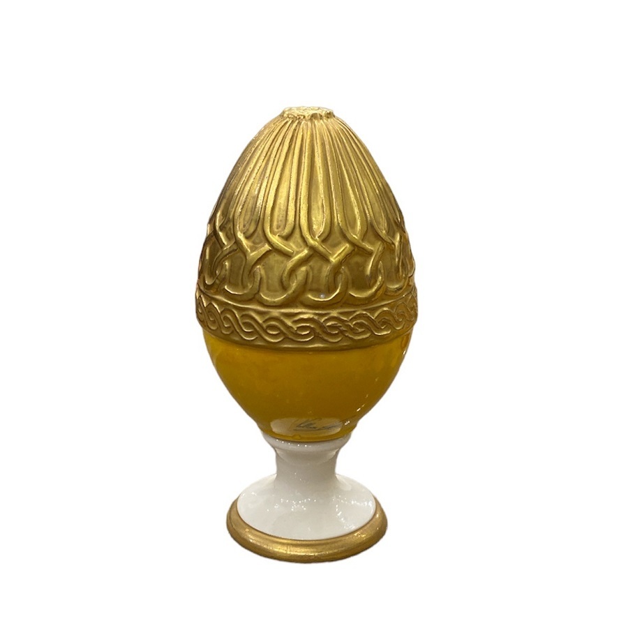 Статуэтка в виде яйца выполнена искусными итальянскими мастерами. Декорирована 24-каратным золотом, что придает ей еще большую ценность. На каждом изделии стоит подпись автора Чезаре Виллари, что служит гарантией подлинности предмета. Статуэтка в виде яйца сочетает в себе не только престиж и роскошь, её красота связана с итальянской историей и традициями.