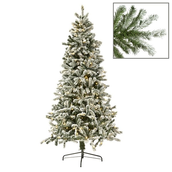 Великолепная ёлка, укутанная снегом. При взгляде на неё видится роскошный зимний лес, покрытый белоснежным покровом, слышится скрип снега под ногами, потрескивание сучьев в морозном воздухе… Эта искусственная ёлка изготовлена из материала высочайшего качества. Густая пышная крона, встроенная подсветка, заснеженные ветки и эффект инея придают ощущение роскоши и изящества. 350 лампочек.