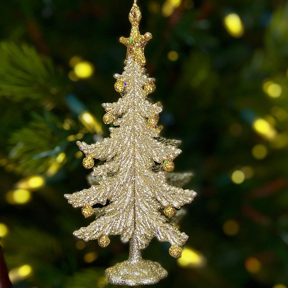 Игрушка в форме рождественского дерева - красивое и праздничное дополнение к вашему праздничному декору. Она словно уже наряжена шарами, наверху красуется звезда. Два вида.