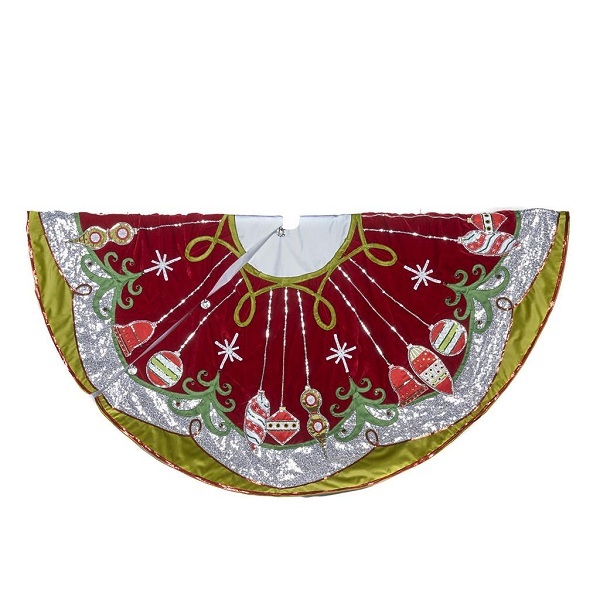 Завершить образ ёлки позволит юбка. Большая и красивая, она скроет крестовину, словно окутав новогоднюю красавицу снежком. Основной фон представлен разнообразными узорами.