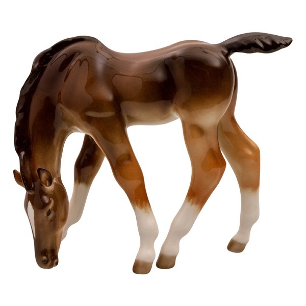 Стройный, словно молодое деревце, живой и трогательный жеребёнок. Интересно, что его ноги несколько удлинены относительно размеров туловища. Это говорит о том, что мастер не просто следует природе, а, осмысляя её, создает нужный ему образ, усиливая одни черты и отсекая другие – он видоизменяет натуру, где-то обобщая, а где-то наоборот, намеренно выделяя деталь, чтобы сконцентрировать на ней внимание зрителя.